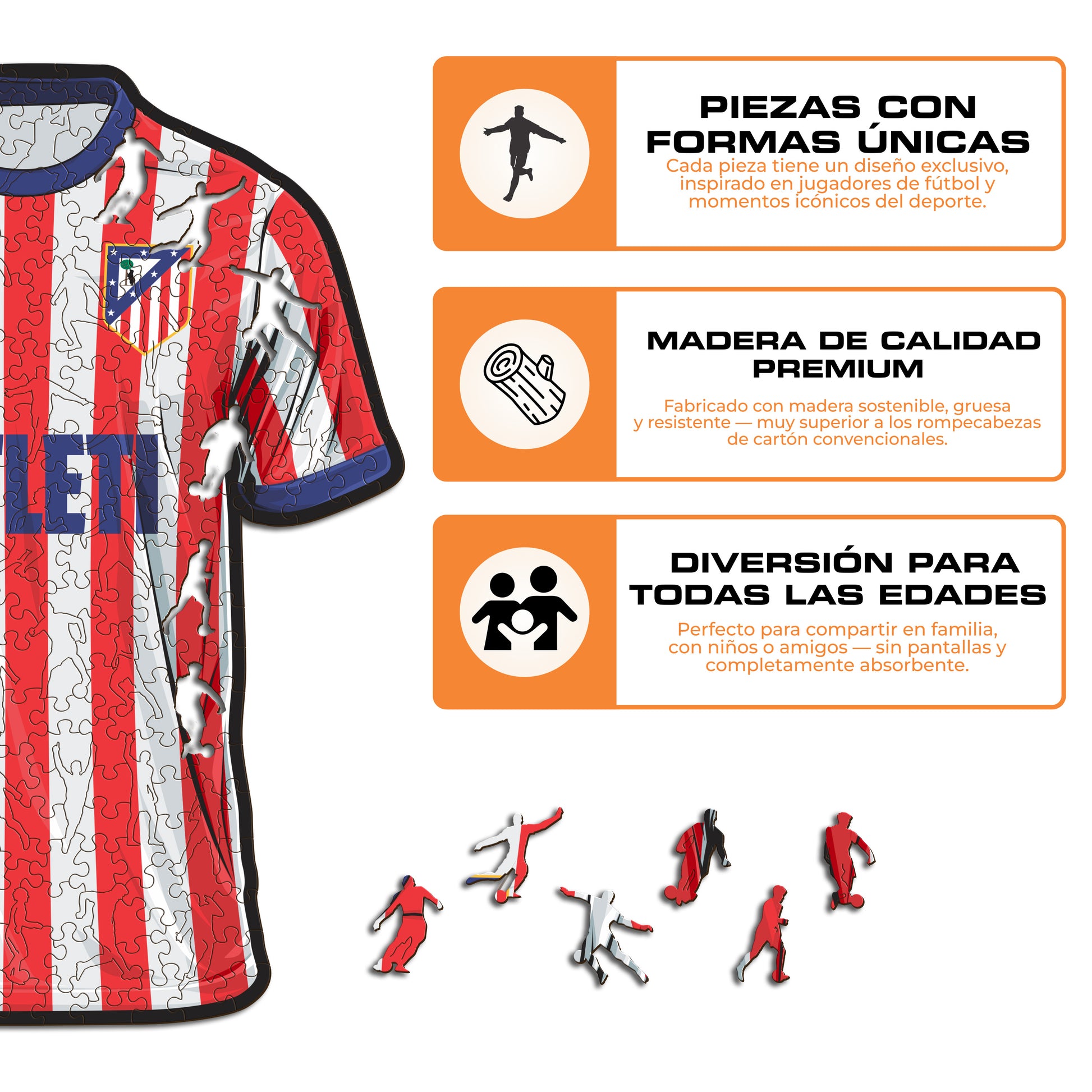 ✓ 1x Rompecabezas de Madera Oficiales: Atlético de Madrid® Camiseta