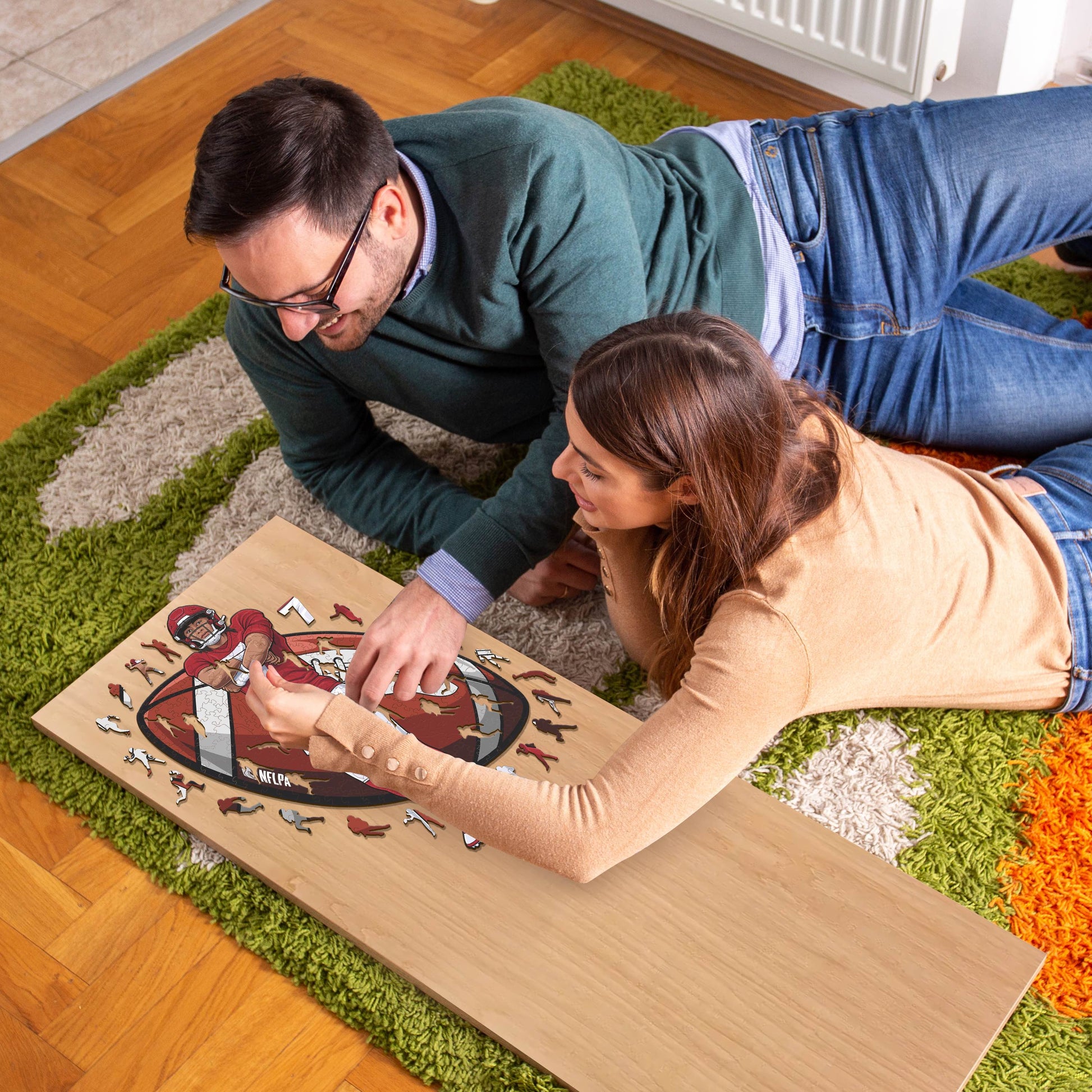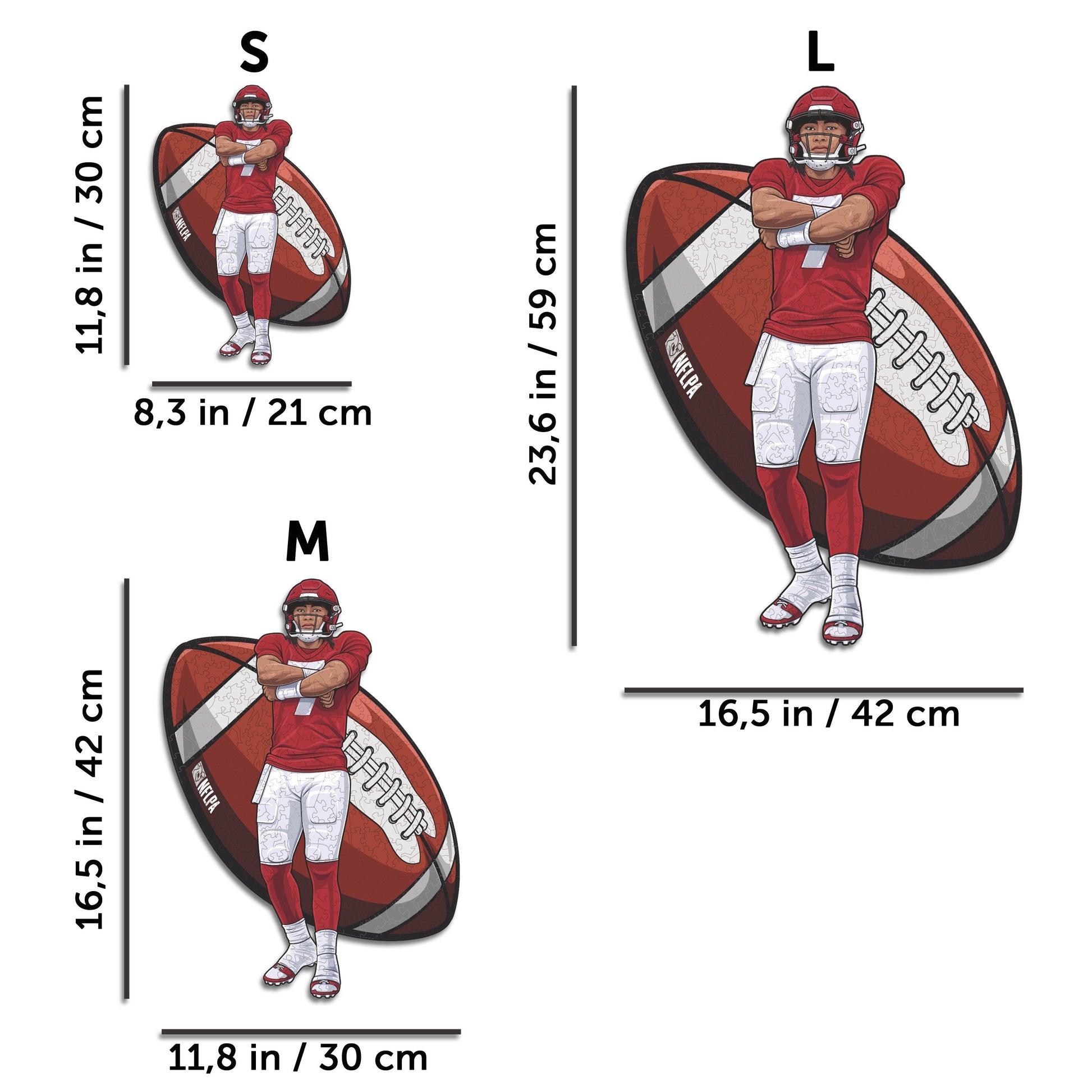 ✓ Cada pieza del rompecabezas tiene una forma única que representa elementos relacionados con el fútbol americano y poses de jugadores icónicos.