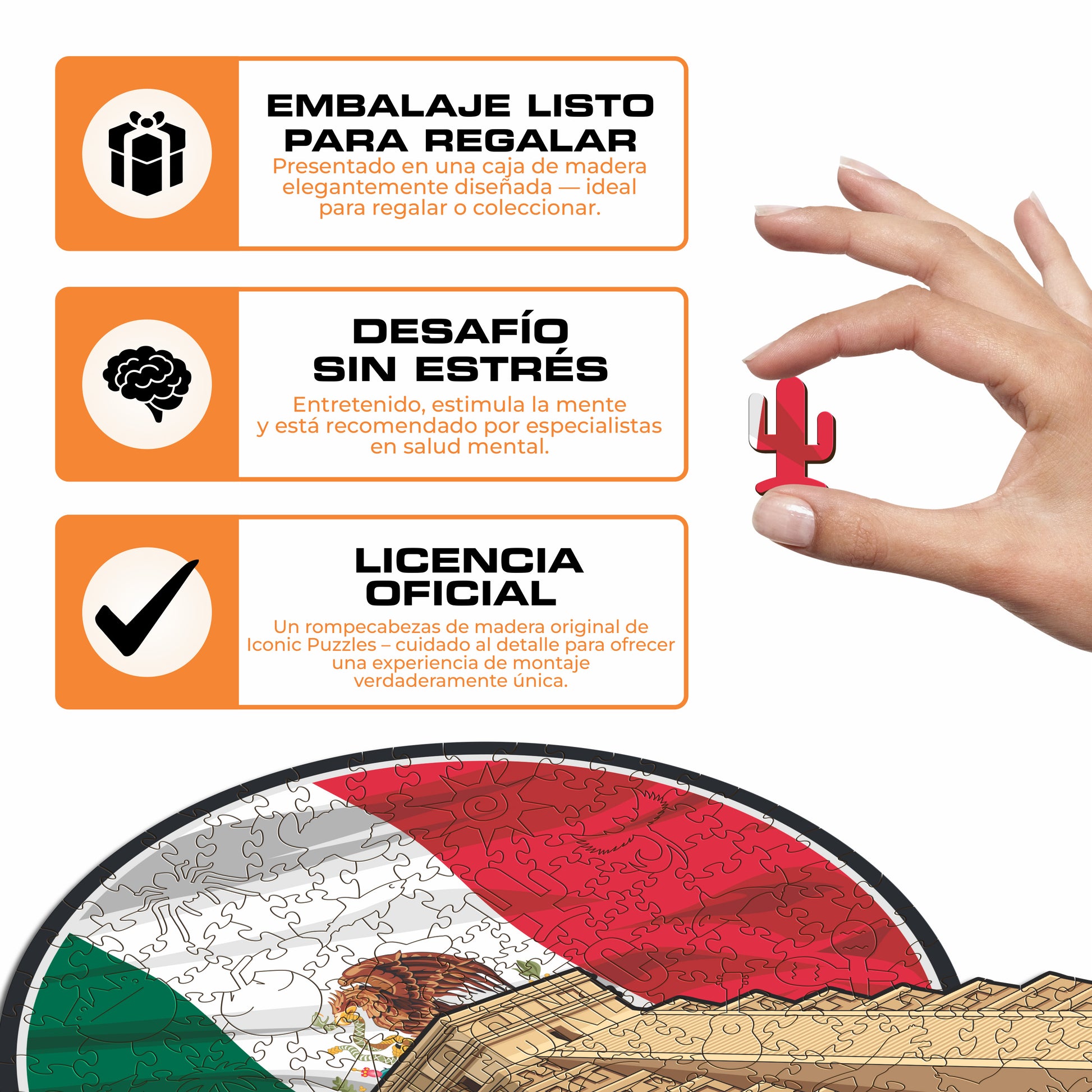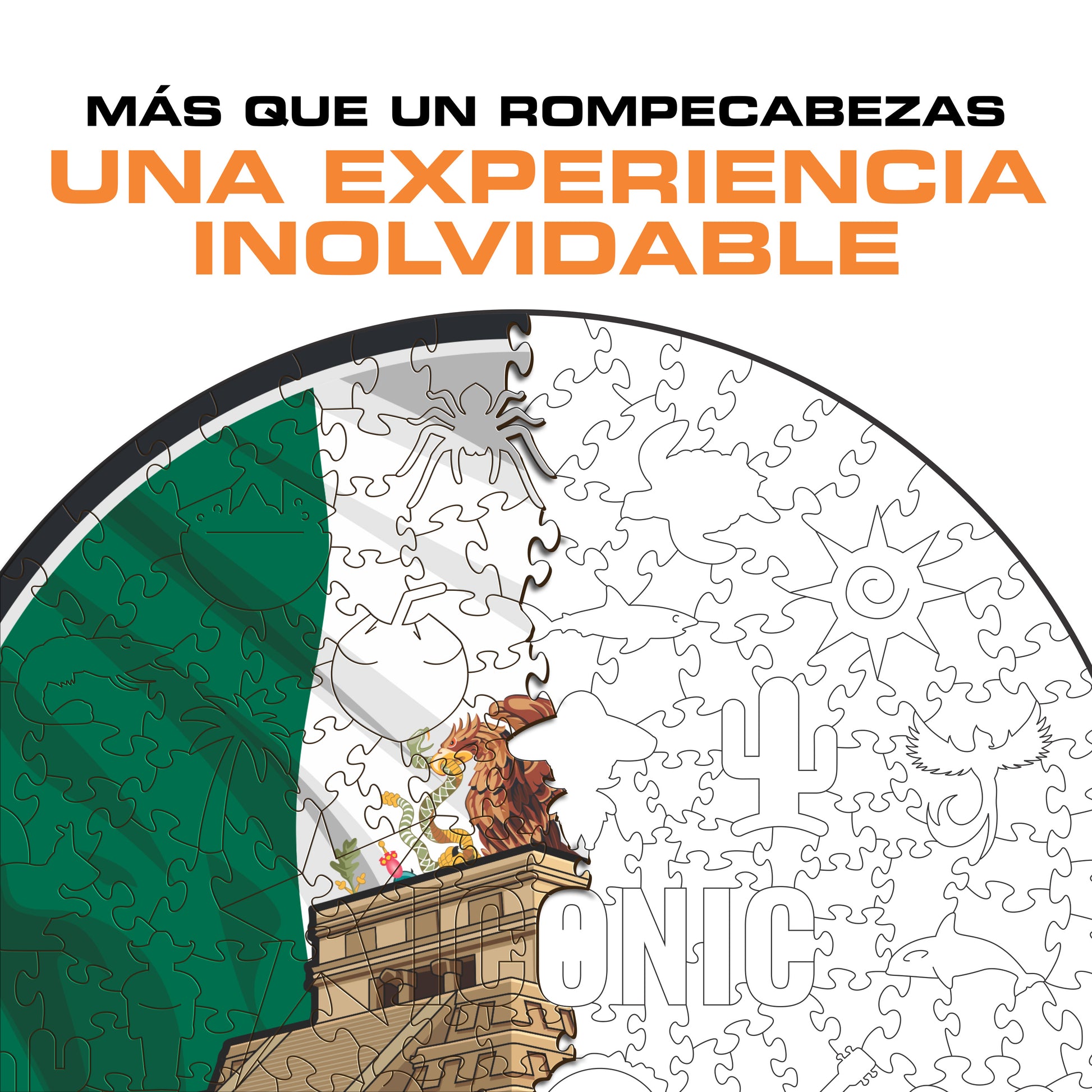✓ Cada pieza del rompecabezas tiene una forma única que representa elementos relacionados con el país Mexico.