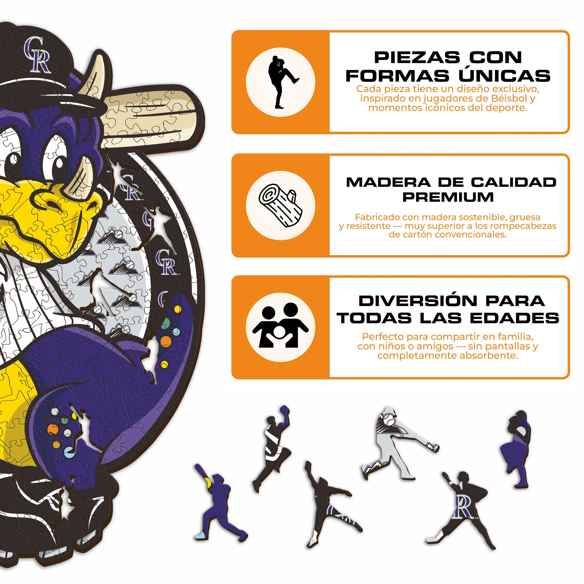 ✓ 1x Colorado Rockies™ Mascota - Rompecabezas de Madera Oficial
