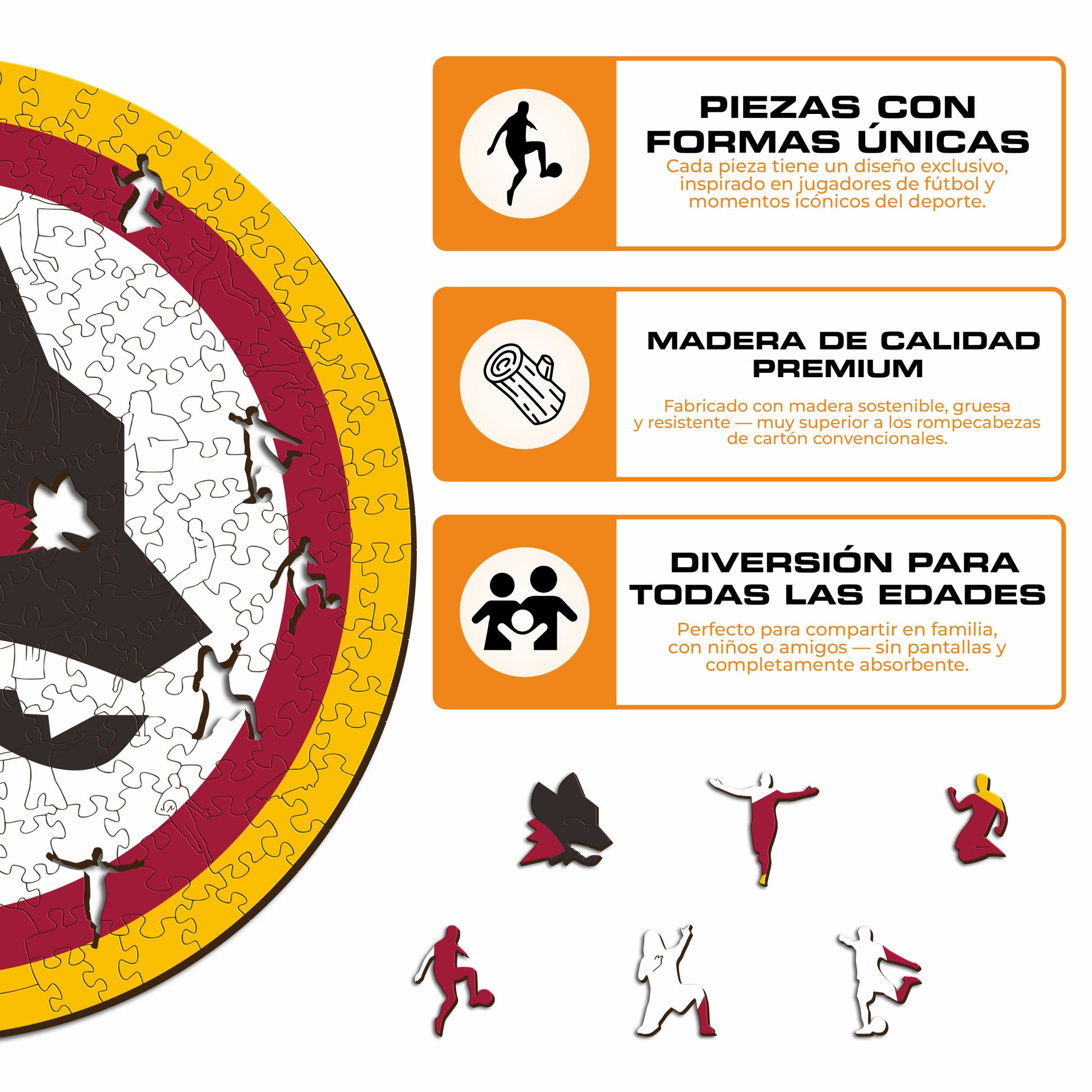 ✓ 1x Rompecabezas de Madera Oficiales: AS Roma® Logo Lupetto