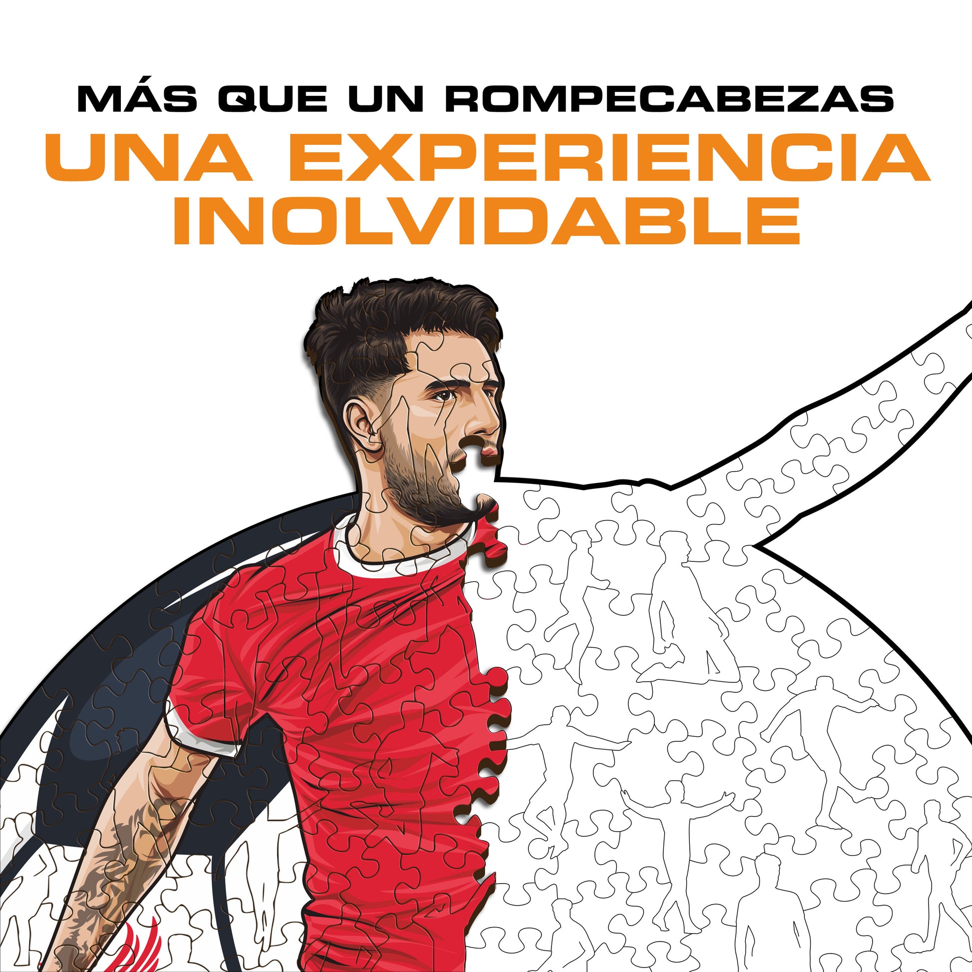 ✓ Cada pieza del rompecabezas tiene una forma única que representa elementos relacionados con el fútbol y poses de jugadores icónicos.
