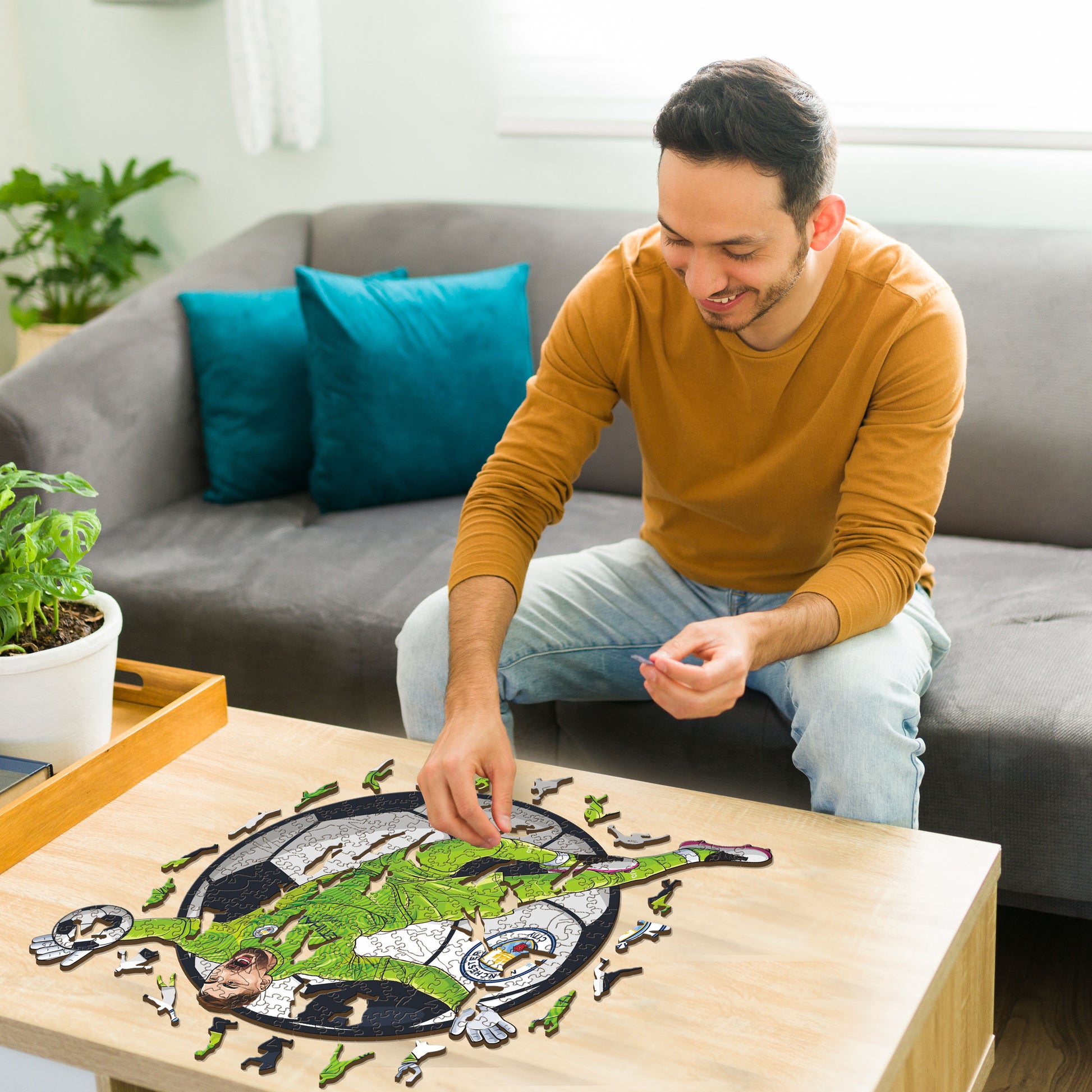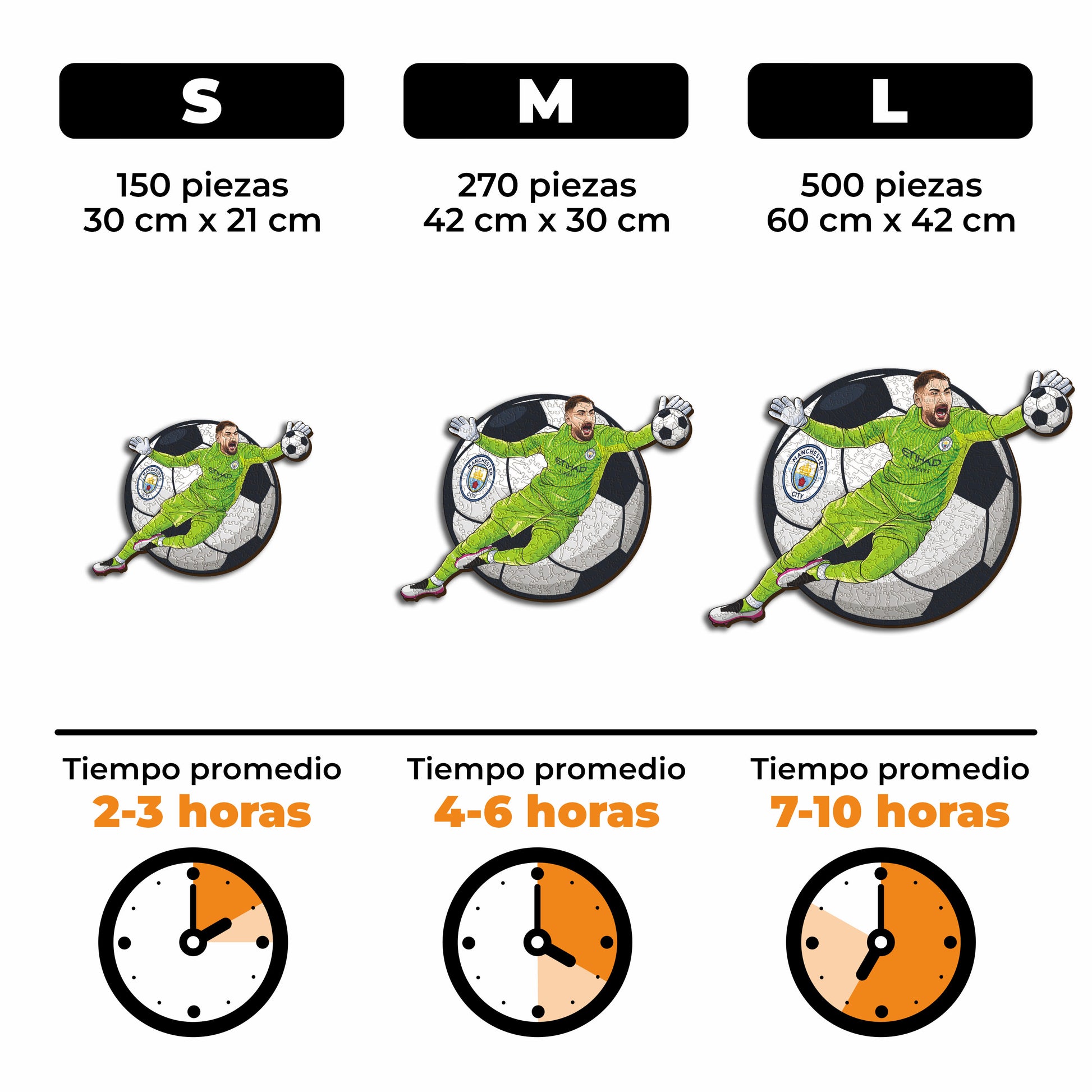 ✓ Cada pieza del rompecabezas tiene una forma única que representa elementos relacionados con el fútbol y poses de jugadores icónicos.