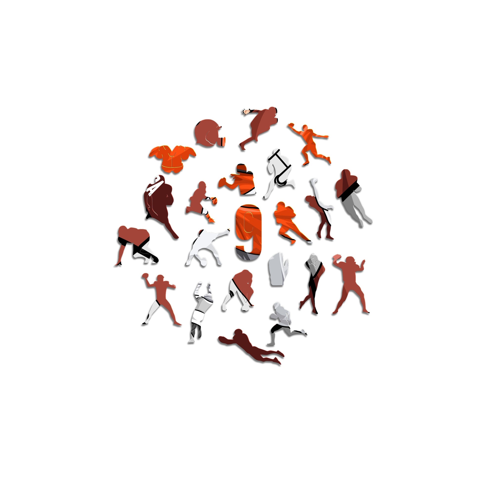 ✓ Cada pieza del rompecabezas tiene una forma única que representa elementos relacionados con el fútbol americano y poses de jugadores icónicos.