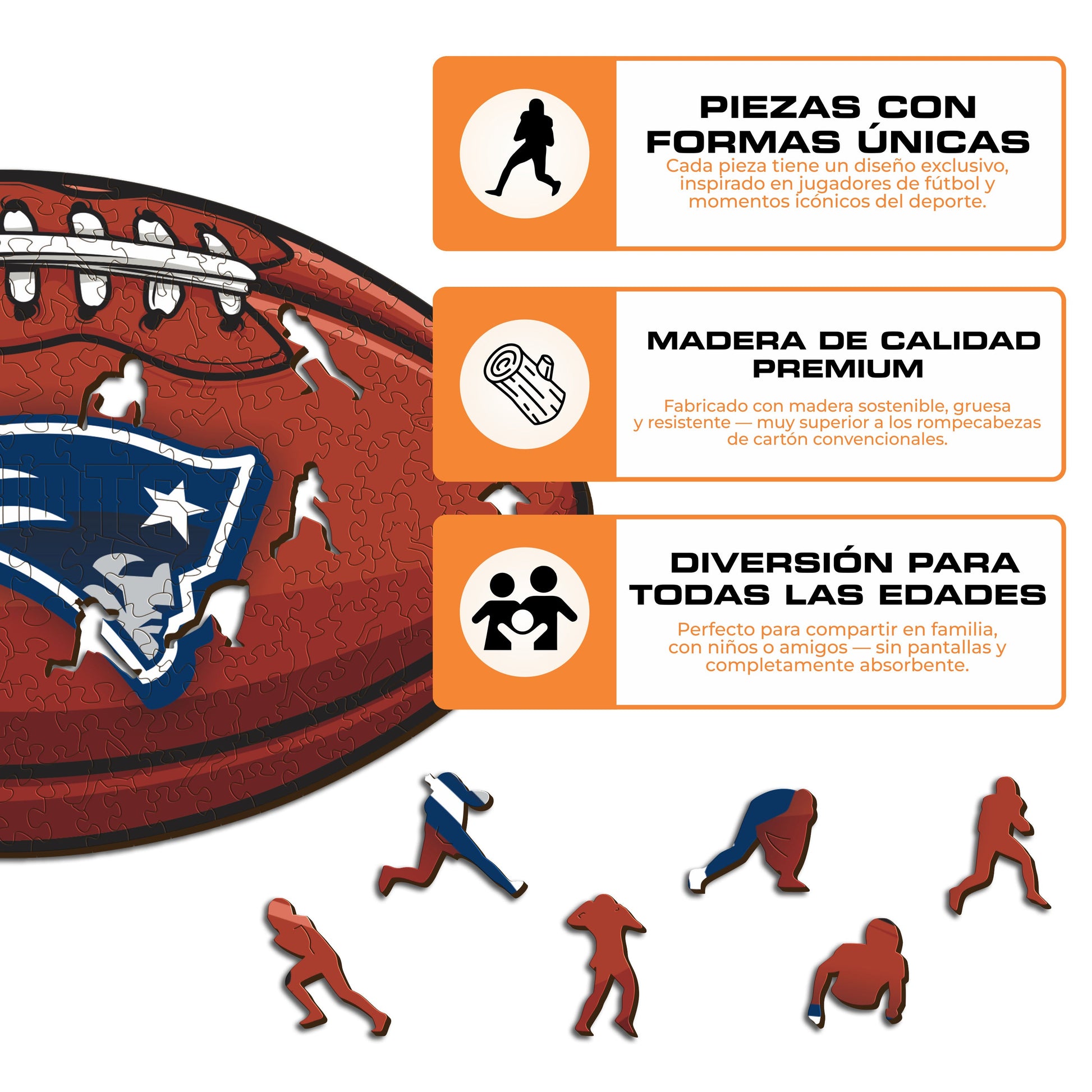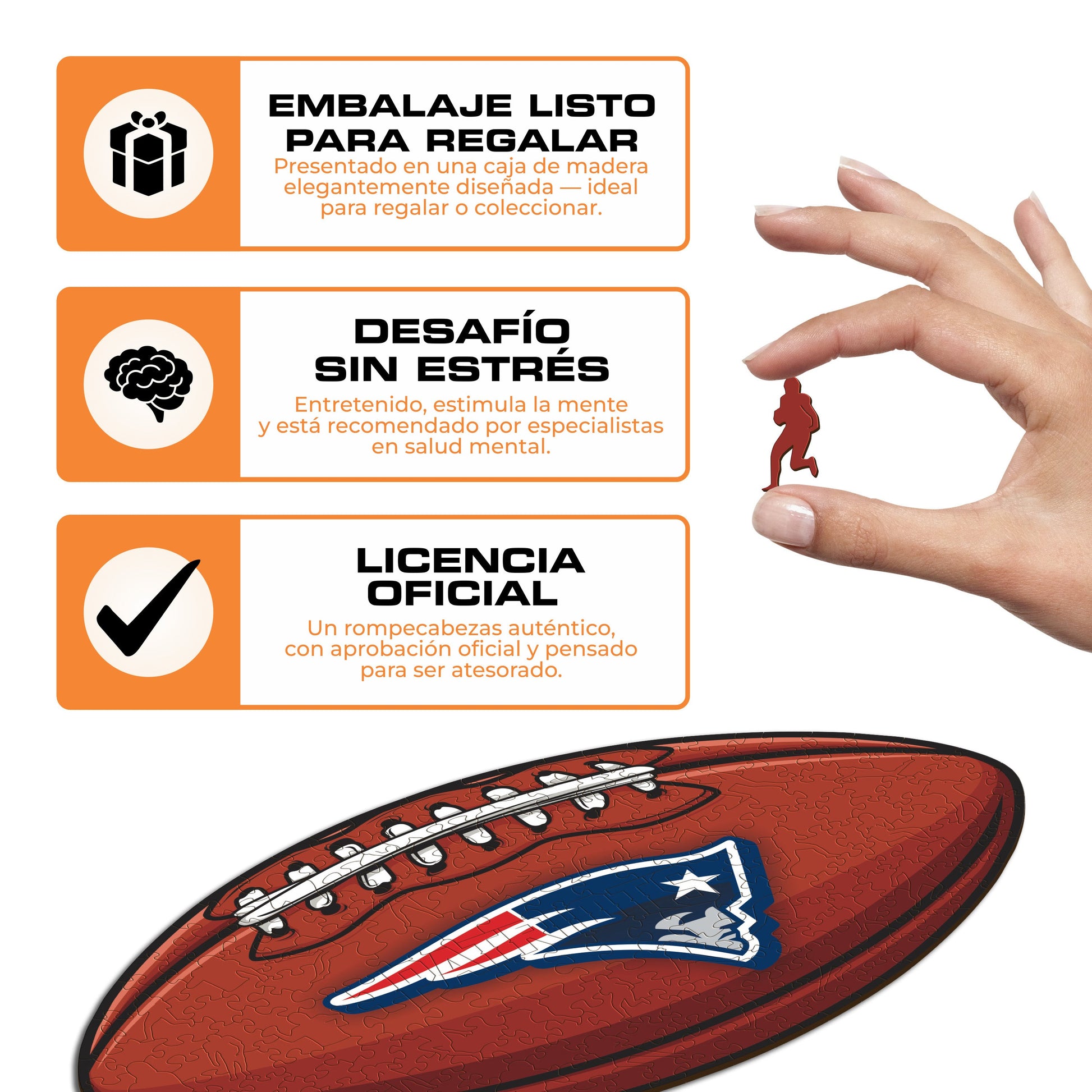 ✓ 1x New England Patriots - Rompecabezas de Madera con Licencia Oficial