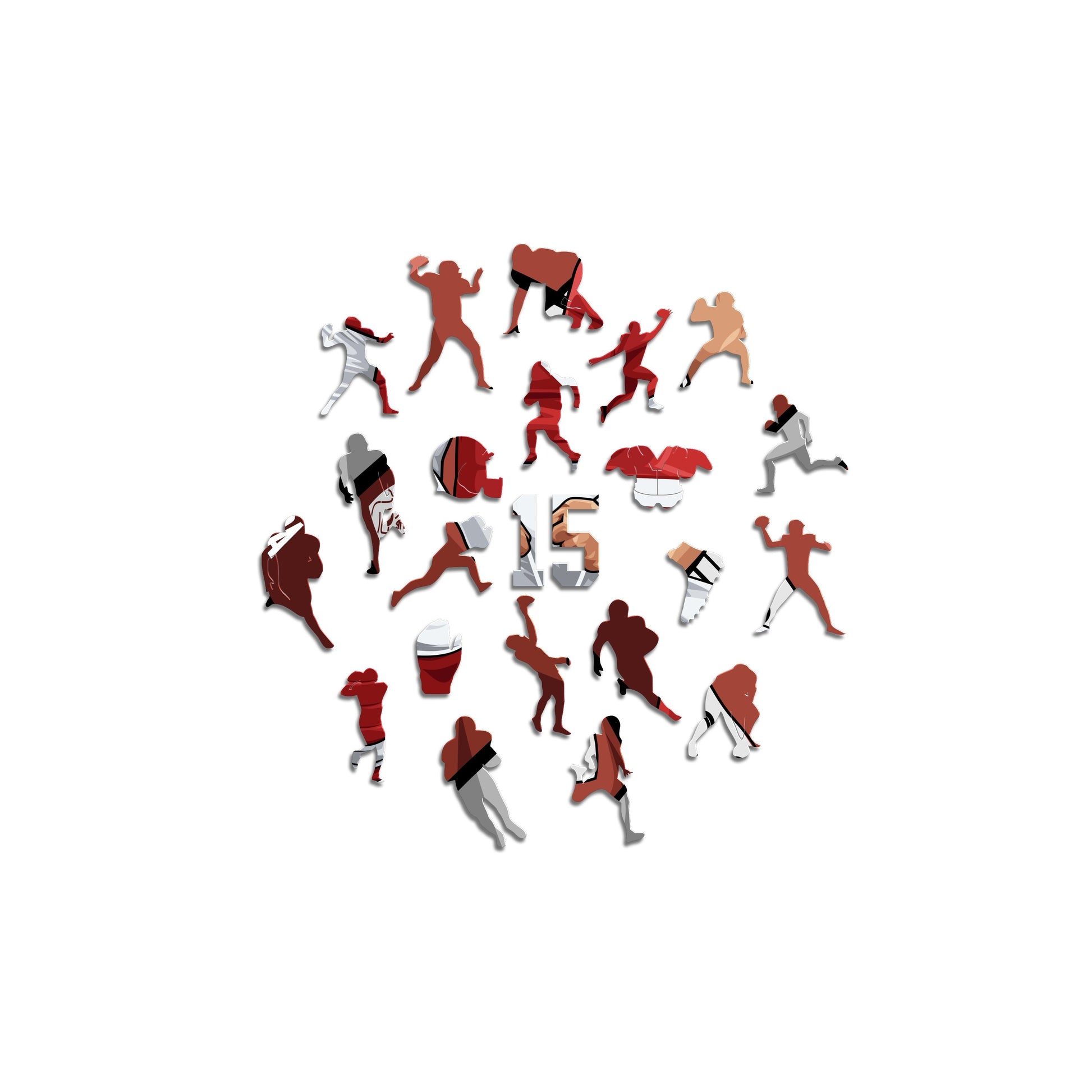 ✓ Cada pieza del rompecabezas tiene una forma única que representa elementos relacionados con el fútbol americano y poses de jugadores icónicos.