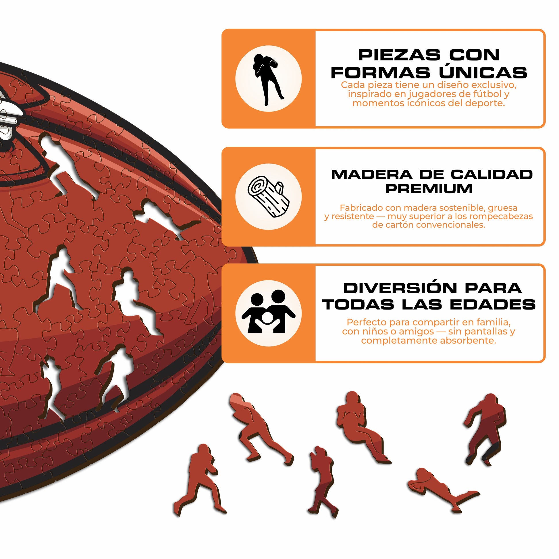 ✓ Cada pieza del rompecabezas tiene una forma única que representa elementos relacionados con el fútbol americano y poses de jugadores icónicos.