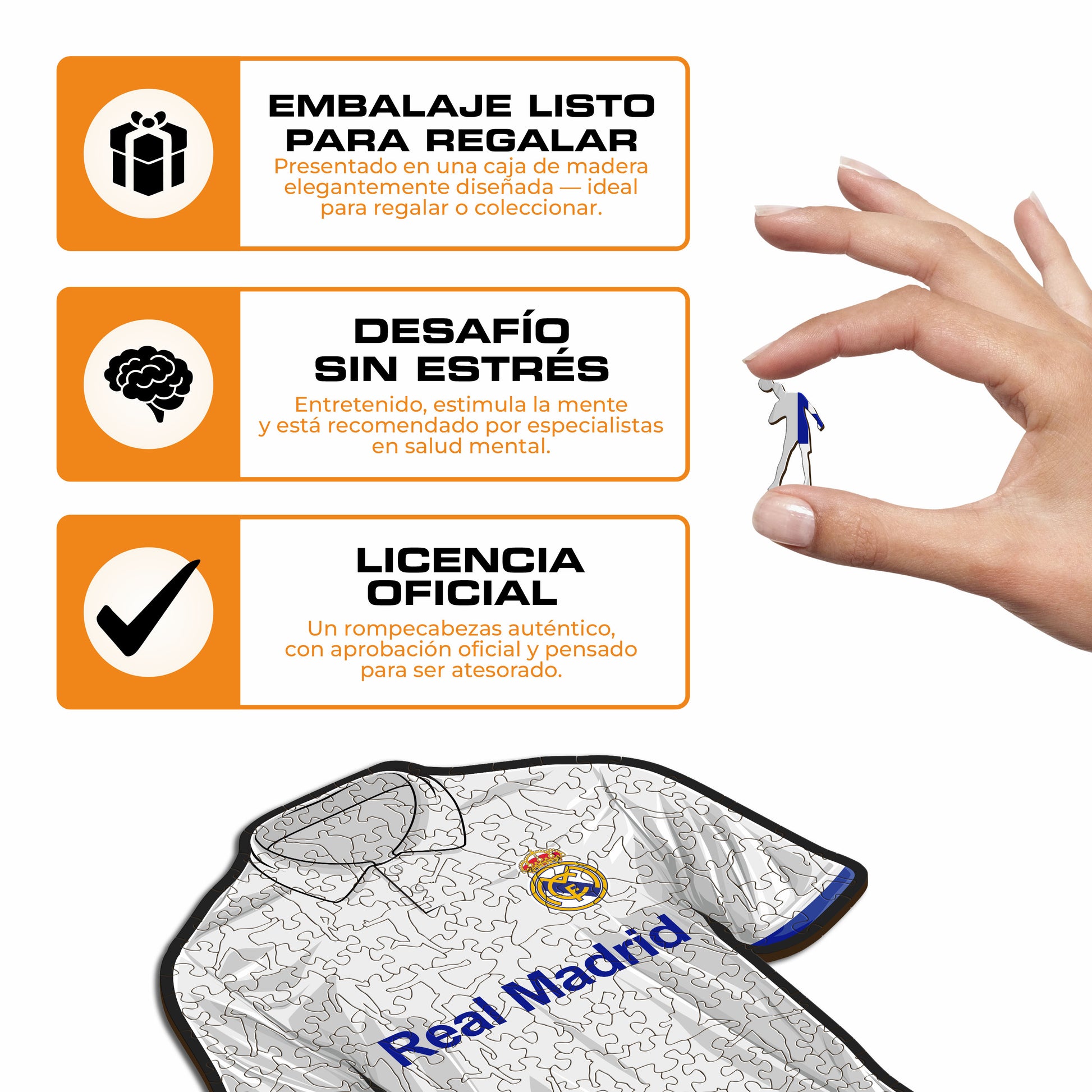✓ 1x Real Madrid CF® Camiseta - Rompecabezas de Madera Oficial