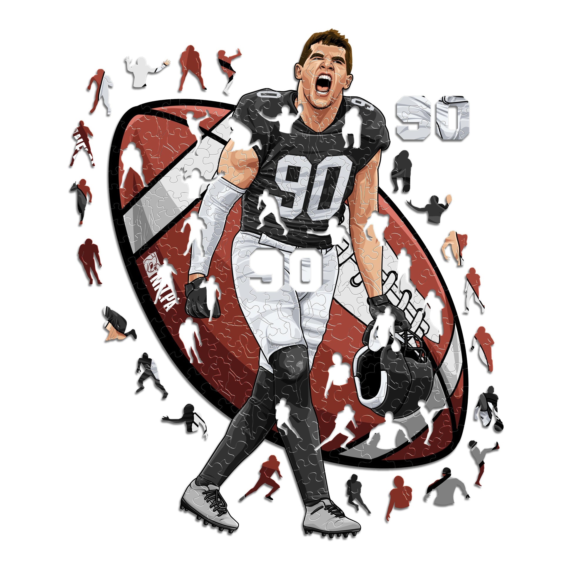 ✓ 1x T.J. Watt - Rompecabezas de Madera con Licencia Oficial de la NFL Players Association